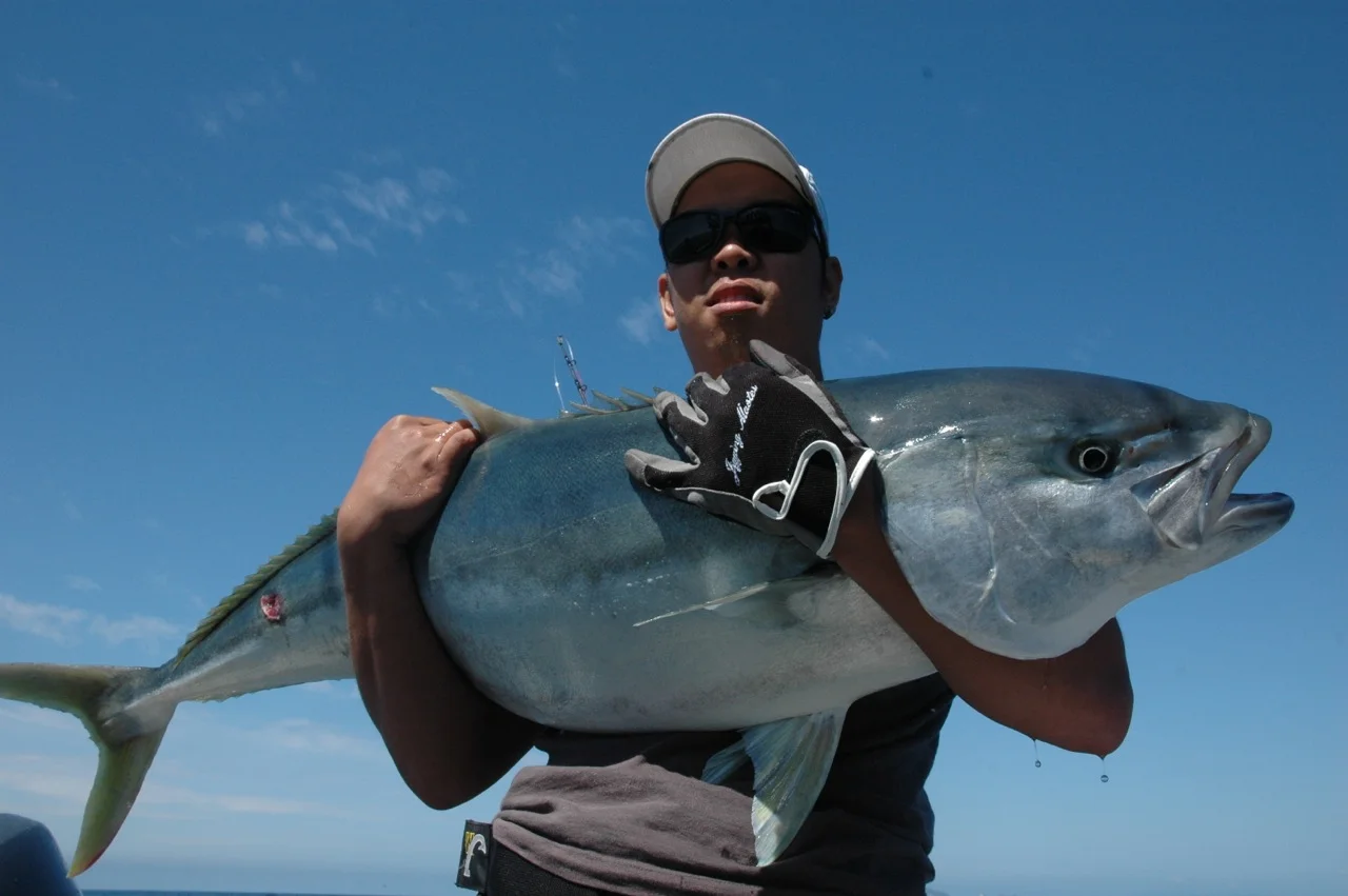 We've been casting light gear to massive kingfish, with the 100m underneath us allowing us to fight 20-30kg kingfish on soft bait gear!