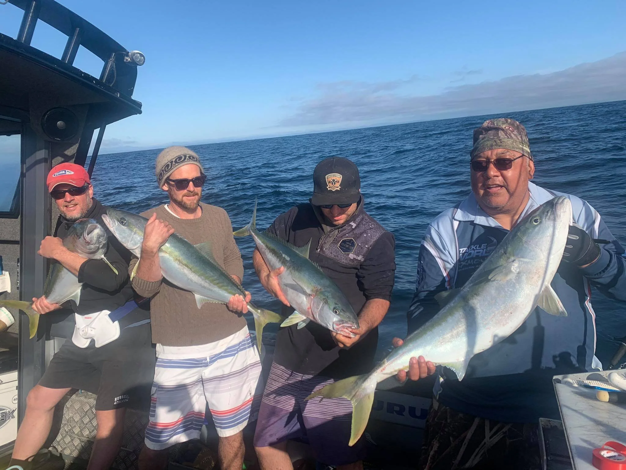 Paleo tacos on the boat and our kumara fish cakes, are good examples of ways you can jump on the boat without the usual processed carbs most blokes take in a packed lunch. Tia made a few desserts over the week that had no processed sugar or carbs. Our breakfasts are sponsored by the good team at Cathedral Cove Naturals, their healthy coconut yoghurts and but and plant based cereals, and that is backed up with some paleo or keto bacon and egg muffins to set everyone up for the big day ahead. One of the highlights food wise, was a ketogenic seafood chowder on the last night, with a base made from hapuku frames, celery and other plants, and with most varieties of seafood from the week added - it was epic! A big thanks to our other sponsors including Be Nourished (kimchi), Chantal Organics (coconut oil, sesame oil, arrowroot powder, organic peanut butter), and Uncle Duncle’s Chilli. Our fish was prepared a lot with the skin scaled and still on, with maximum fat content and Omega3. After so much kaimoana during the week, we finished up on the last day with an epic crockpot hangi, . eautiful melting fatty meat and cabbage, it was such a nice way to finish things off.